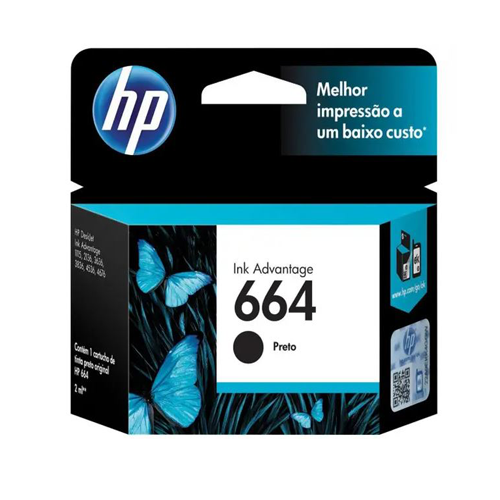 Cartucho de Tinta HP Preto 664 Original Imprima todas as suas fotos e documentos com cores mais nítidas, pretos mais intensos e durabilidade superlativa usando os cartuchos de tinta HP originais. Dê as suas idéias mais vida, otimizando recursos com a qualidade e confiabilidade que você só obtém com a HP. Cartucho de tinta, Imprima texto nítido e cores intensas com os cartuchos de tinta originais HP projetados para oferecer impressões de qualidade em casa, na escola e em pequenas empresas. Cartucho de tinta. Imprima texto nítido e cores intensas com os cartuchos de tinta originais HP projetados para oferecer impressões de qualidade em casa, na escola e em pequenas empresas. Com cartuchos muito baratos, obtenha tinta HP original por um preço acessível.