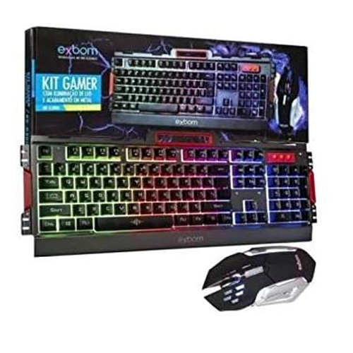 Kit Gamer Profissionl Teclado e Mouse Exbom BK-G3000 com Iluminação LED Acabamento em Metal Usb 2.0 Preto